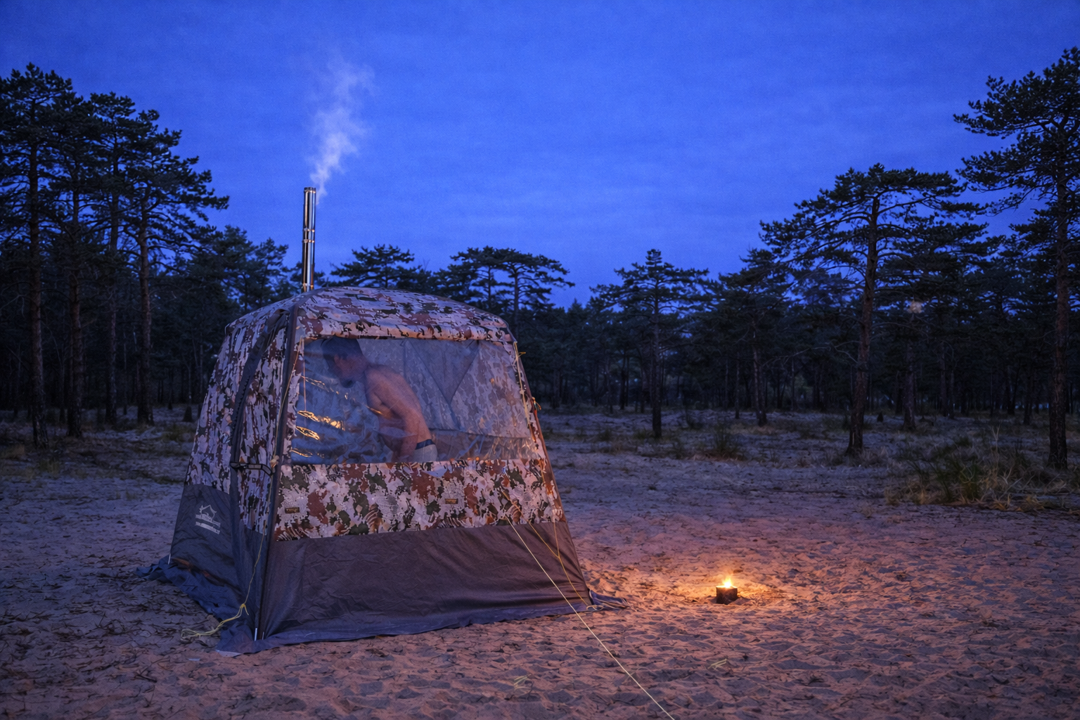 ✔ Vedeldat bastutältält: Temp ca 70-90 grader